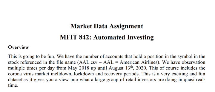 Evaluation Rubric for Robinhood Data AssignmentLast updated on Mar 13, 2021Go to Project SitedevrdanotactiveNelson BighettiProfessor of Artificial IntelligenceMy research interests include distributed robotics, mobile computing and programmable matter.NextEvaluation Rubric for Market Data AssignmentPreviousEvaluation Rubric for Robinhood Presentation